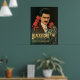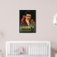 This vintage magician advertising poster is of Harry Blackstone. In this poster there are two red devils sitting on his shoulder and one stirring a cauldron i the lower right corner. The bright red against the deep black background make for a very striking poster suitable for framing.