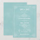 Simple, elegant Save the Date's with thin, fancy swirls reminiscent of vintage art deco design against a softly textured, robin's egg blue background.