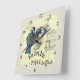 Vintage Blue Bird Birdcage Collage Square Wall Clock