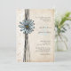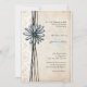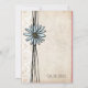 This vintage old fashioned wedding invitation features whimsical customisable text with a light blue daisy flower and faded white lace against an aged parchment paper.