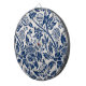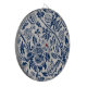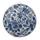 This design features an elegant floral pattern. The flowers are in a dark shade of blue. The flowers look somewhat like thistles or dandelions, but they are artistic representations of generic plants; they have large leaves growing around the flowers.