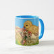 Decorate your kitchen with this cute blue combo mug. this coffee mug features a vintage baby chicken and easter egg design. The greeting may be personalised with your text.