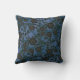 Stylish elegant throw pillow featuring vintage blue floral wallpaper pattern with shades of slate grey and black with accented hints of metallic gold.