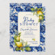 Vintage Blue Tile Yellow Lemons Baby Shower Invitation