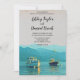 This elegant vintage black calligraphy wedding invitation is suitable for a modern summer destination wedding. The romantic minimalist design features Vintage boats navy seascape destination wedding invitation