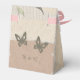 This wedding favour box comes in different sizes, shapes and papers. It is customisable with your sweet thank you and monograms . It shows a harmonious blend of sage green eucalypthus greenery, butterflies, and torn paper with transparent vintage script. Earthy brown and beige tones set the tone for a boho chic celebration and makes this design complete. Hobinishop