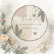 This wedding thank you sticker comes in different sizes, shapes and papers. It is customisable with your Intros, names and or monograms. It shows a harmonious blend of a sage green eucalypthus greenery, butterflies, and torn paper with transparent vintage script. Earthy brown and beige tones set the tone for a boho chic celebration and makes this design complete. Hobinishop