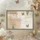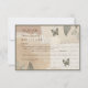 This wedding RSVP card comes in different sizes, shapes and papers. It is customisable with your dates, text, meals and monograms. It shows a harmonious blend of sage green eucalypthus greenery, butterflies, and torn paper with transparent vintage script. Earthy brown and beige tones set the tone for a boho chic response and makes this design complete. Hobinishop