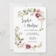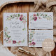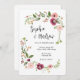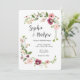 Wedding invitation featuring an elegant border of bohemian inspired flowers with poppies and burgundy and mauve flowers. Customise with your information.