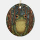 This elegant bohemian illustration depicts a charming forest frog nestled amidst a lush and enchanting woodland scene. The frog, rendered in exquisite detail, is surrounded by an array of vibrant flowers, delicate foliage, and rich greenery, all beautifully intertwining. The art nouveau style is evident in the flowing, organic lines and intricate patterns that define the flora and fauna. The background features elegant, sinuous curves and stylised natural forms, creating a harmonious and whimsical atmosphere. This captivating artwork blends the natural beauty of the forest with the graceful, decorative elements of art nouveau, resulting in a visually stunning and serene composition.