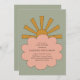 Celebrate the arrival of a little one with this charming baby shower invitation featuring a retro-inspired sunburst and soft pastel hues. Perfect for modern parents who appreciate vintage aesthetics, this customisable design sets the tone for a warm and joyful gathering. Ideal for themes like boho, earthy, or sunshine-inspired showers, it invites friends and family to join in the excitement with a personal touch.