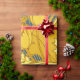 Vintage Bold Tulip Blue Gold Pattern Wrapping Paper