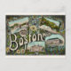 A vintage postcard greeting from Boston highlighting iconic landmarks like the Frog Pond repurposed on a new postcard!