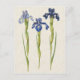 Postcard with a vintage illustration of blue irises from The Gottorfer Codex, 1649-1659. Digitally cleaned and enhanced to resemble a watercolor on a light tan antique texture background.
