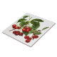 Ceramic tile in a scattered print of cherries and leaves adapted from vintage botanical prints - Deep red cherries and green leaves on a white background