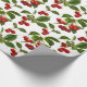 Wrapping paper in a scattered print of cherries and leaves adapted from vintage botanical prints - Deep red cherries and green leaves on a white background