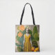 This vintage tote bag design expresses woman's beauty in botanical collage