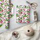 Wrapping paper in a scattered print of cherries and leaves adapted from vintage botanical prints - Deep fuchsia pink and burgundy cherries and green leaves on a white background