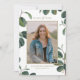 Invite family and friends to your graduation party with this customisable class of 2023 botanical graduation invitation. It features watercolor leaves on white background. Personalise this boho graduation invitation by adding a photo, name, school and other details. This photo graduation invitation is available in other cardstock.
