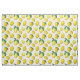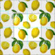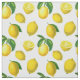Fabric in a print of scattered lemons and leaves based on elements of vintage botanical art, digitally enhanced