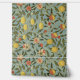 Transform your living space with this exquisite vintage wallpaper, inspired by the timeless designs of William Morris. This botanical masterpiece features a detailed pattern of lush green leaves intertwined with vibrant pomegranates and citrus fruits, accented by delicate floral motifs. The colour palette includes rich shades of olive green, lemon yellow, coral red, and subtle ivory, all set against a striking deep teal background. Perfect for adding a touch of elegance and sophistication to any room, this wallpaper seamlessly blends classic charm with contemporary style.