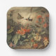 Vintage botanical scene: hummingbirds and flowers paper plate