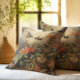 Vintage botanical scene of hummingbirdsand flowers cushion