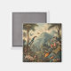 Vintage botanical scene of parrots and flowers magnet