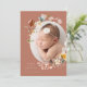 This elegant and modern classic stylish vertical photo birth template announcement is a 2-sided double sided card that features an oval shaped cutout photo of your newborn baby girl and lovely botanical greenery florals framing the baby's image. Personalise this photo card with your custom message from the family (mother, father, siblings if you wish) that can be personalised on the back side with any thank you message or phrase quote from the new parents. There is also a second horizontal photo featured on the backer side. This baby announcement card features a colour palette in vintage muted colourful red, green, yellow, blue, and pink tones.
