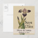 Vintage Botanicals Flower Art, Iris, for this Save the Date Wedding Announcement Postcard.