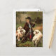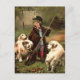 vintage historical young boy ready to hunt with dogs in country postcard