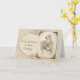 Very elegant and stylish card to congratulate on a wedding. A cream background with a decorated oval shield, and a vintage bride picture with metal photo corners. A unique card, fully customisable with text of your choice.