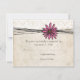 This vintage old fashioned wedding invitation RSVP features whimsical customisable text with a hot pink daisy flower and faded white lace against an aged parchment paper