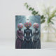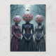 A surreal scene of three women with vintage bubblegum machines for their head in a forest