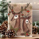 Vintage Buck And Doe Deer Christmas Holiday Card. This design features a buck and a doe deer with Christmas ornaments hanging from their antlers. What a beautiful retro holiday scene. Personalise this custom design with your own inside greeting.