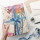 Vintage floral ephemera decoupage wrapping paper featuring cute English bulldog, flowers and bicycle. Perfect for crafts projects or gift wrapping.