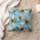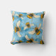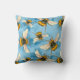 Vintage Bumble Bee Illustration on Blue Clouds Cushion