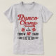 Let your Bunco group know that you are the Bunco Champ. Vintage style design complete with a bunco bell and three bunco dice. Text reads: Bunco Champ,. Throw Hard and A Bunco Is Only One Throw Away. Perfect shirt for wearing to a Bunco fundraiser or Bunco game night.