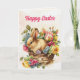 Vintage Easter folded greeting card with a cute brown bunny in a basket full of bright and colourful pink, blue, and yellow flowers. The message on the inside is designed for this card to be sent from one family to another for Easter. Keep this message or add your own. You can even add your own photos to the inside left and to the back when you use Zazzle's design tool. Contact me for assistance with your customisations or to request additional matching or coordinating Zazzle products for your special occasions.