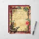 Gorgeous burgundy ephemera in frames - Vintage Invoice Ticket, outcropped by vintage flowers.