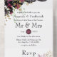 Vintage marsala (burgundy) and gold shabby-chic flowers wedding invite with accents of plum and black.