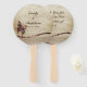 A wedding hand fan to keep cool on that hot day. A special thank for the guest. The antique lace over vintage parchment paper image look is quite trendy. String of beads with a butterfly brooch image that seems to sparkle. Personalise the text to your own information. The back has a similar design. Matching products are available or transfer this design for other products.