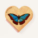 A vintage illustration, circa 1750, of a red and blue South American butterfly. Add your own text.