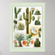 Vintage cactus scientific illustration wall poster. Great for southwestern themes room decor. Pale and deep greens and gold hues.