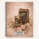 A detailed vintage-style illustration of an antique camera surrounded by soft pink roses and delicate greenery. Warm sepia tones and a textured background create a nostalgic, shabby chic composition inspired by classic photography and floral themes.