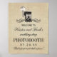 Add rustic-vintage charm to your photo station with this vintage camera "Photobooth" sign featuring a classic press camera illustration with ornamental flourishes on a warm linen textured background. The natural, organic feel pairs beautifully with barn, garden, or rustic-themed celebrations. Guests are invited to grab a prop and strike a pose. All text is fully customizable.