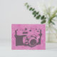 Vintage camera with pink swirls background postcard. Great for all occasions.
