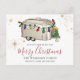 A cute vintage camper trailer Christmas greeting from a family on the road for the holidays.