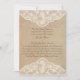 This very beautiful Wedding Invitation has the look of vintage canvas as the background. To both the top and bottom edges is a delicate ivory or pale cream colour lace pattern incorporating leaves, roses and decorative scrollwork. The final effect of this charming invitation is both elegant and rustic. Please note that this vintage canvas, paper and lace look wedding invitation is entirely printed, there is no lace fabric on the invite and it is one single layer. Matching products are available.