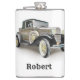 The flask itself is fine. It’s a cheap flask, obviously bought in bulk, however am prepared to overlook that. Given that it is a personalized item, I would have liked to have seen gift boxing instead of the generic packaging. Terrible printing, and/or quality. It’s a cheap, tacky vinyl. It is not cut straight and is also applied in a way that it is overhanging the bottom, causing the glue to catch on items and it will eventually roll and tear, damaging the wrap.